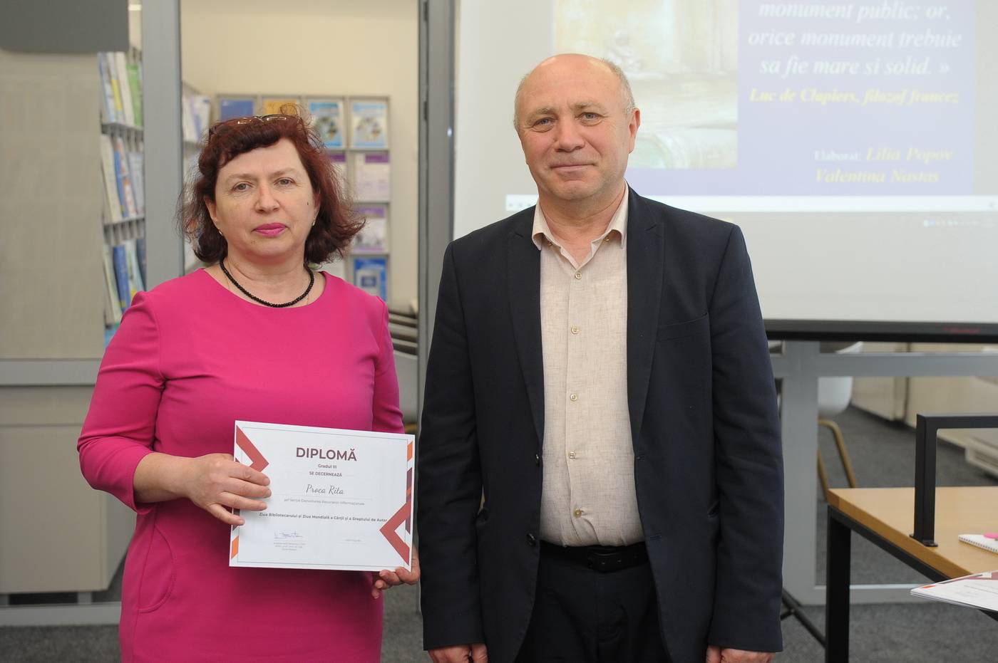 De asemenea, au fost înmânate 4 diplome de noblețe din partea Asociației Bibliotecarilor din Republica Moldova, bibliotecarilor Larisa Rovcova, Diana Dabija, Larisa Bondarenco și Irina Salaur, în semn de recunoaștere a contribuției remarcabile și a implicării lor în promovarea valorilor profesiei de bibliotecar.