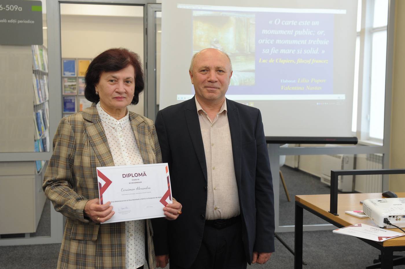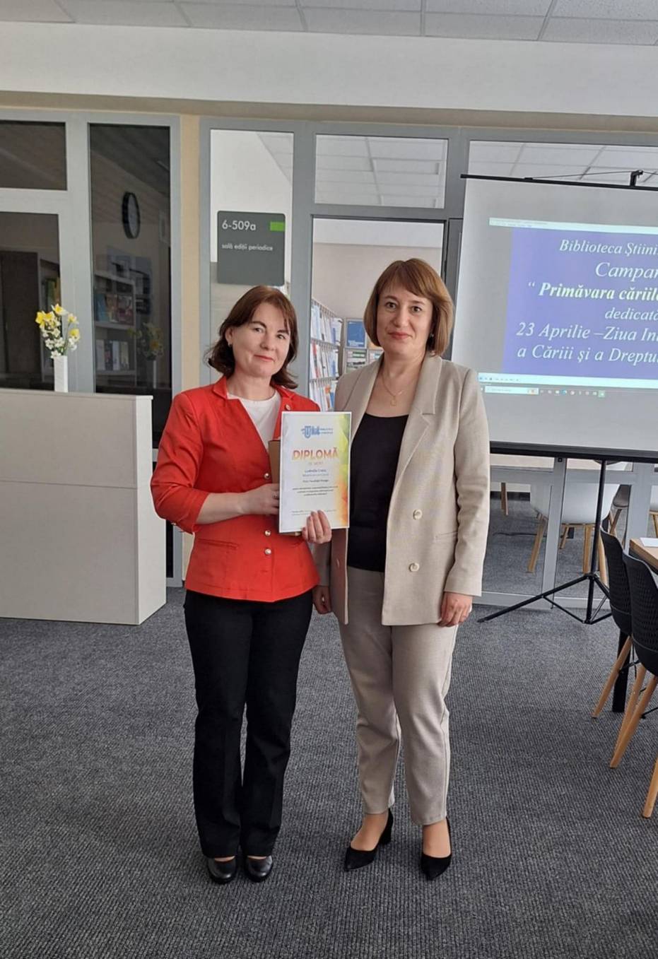 - Diplomă de merit pentru consolidarea relației dintre bibliotecă și comunitatea academică și promovarea activă a dialogului cu utilizatorii – Ludmila Gîrlea, bibliotecară principală, Secția Informare, Documentare și Comunicarea Colecțiilor